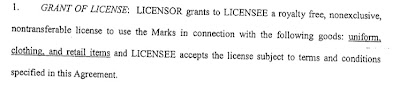 Express Corporate admits that the marks are identical but argues that the plaintiff’s “registered trademark rights begin and end with the food and beverage service business and do not extend to clothing and apparel items. Instead, these trademarks as applied to clothing and apparel items have been lucidly the domain of [Express Corporate].” (Doc. 21 at 3) Common sense belies this argument, which contradicts the express terms of the parties’ “Supplier Trademark License Agreement .” . . . . “A licensee’s prior claims of any independent rights to a trademark are lost, or merged into the license, when he accepts his position as licensee, thereby acknowledging the licensor owns the marks and that his rights are derived from the licensor and enure to the benefit of the licensor.” [Citations.] Upon signing the license, Express Corporate’s prior independent use of the Beef O’Brady’s marks merged into the license, and Express Corporate acknowledged the plaintiff’s ownership of the marks. |
